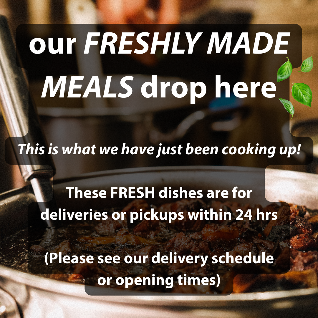 We have the whole range available frozen usually always and the "Fresh" button below is what has just been cooked up. Buy those ones if you need dinner that night or if you need to portion out into smaller serves before you freeze.