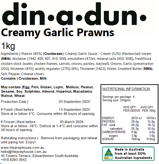 Sold outFRESH Creamy Garlic Prawns