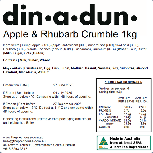 Sold outFRESH Apple & Rhubarb Crumble 1kg