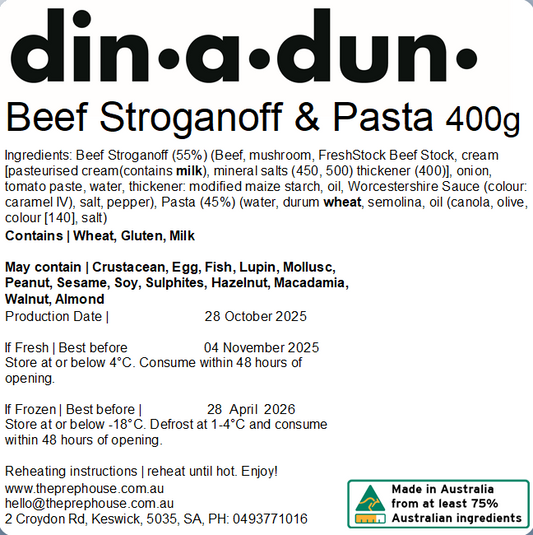 Sold outFRESH Beef Stroganoff & Pasta 400gm
