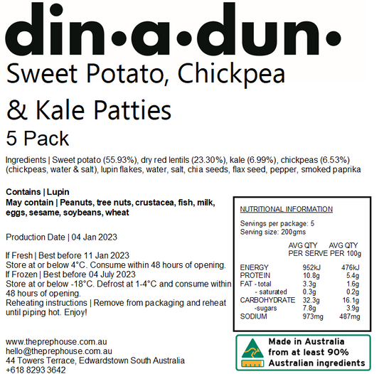 Sweet Potato, Chickpea & Kale Patties (pack of 5)